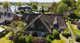 Historisches Bauernhaus auf dem Land am Wasser mit 4 Ferienwohnungen, Tenne, Kamin, Sauna und riesigem Garten mit Apfel-und Birnenbäumen direkt an der Eider
